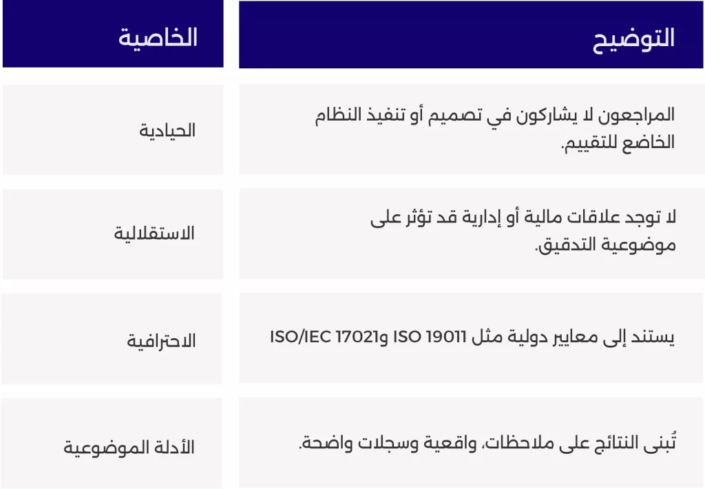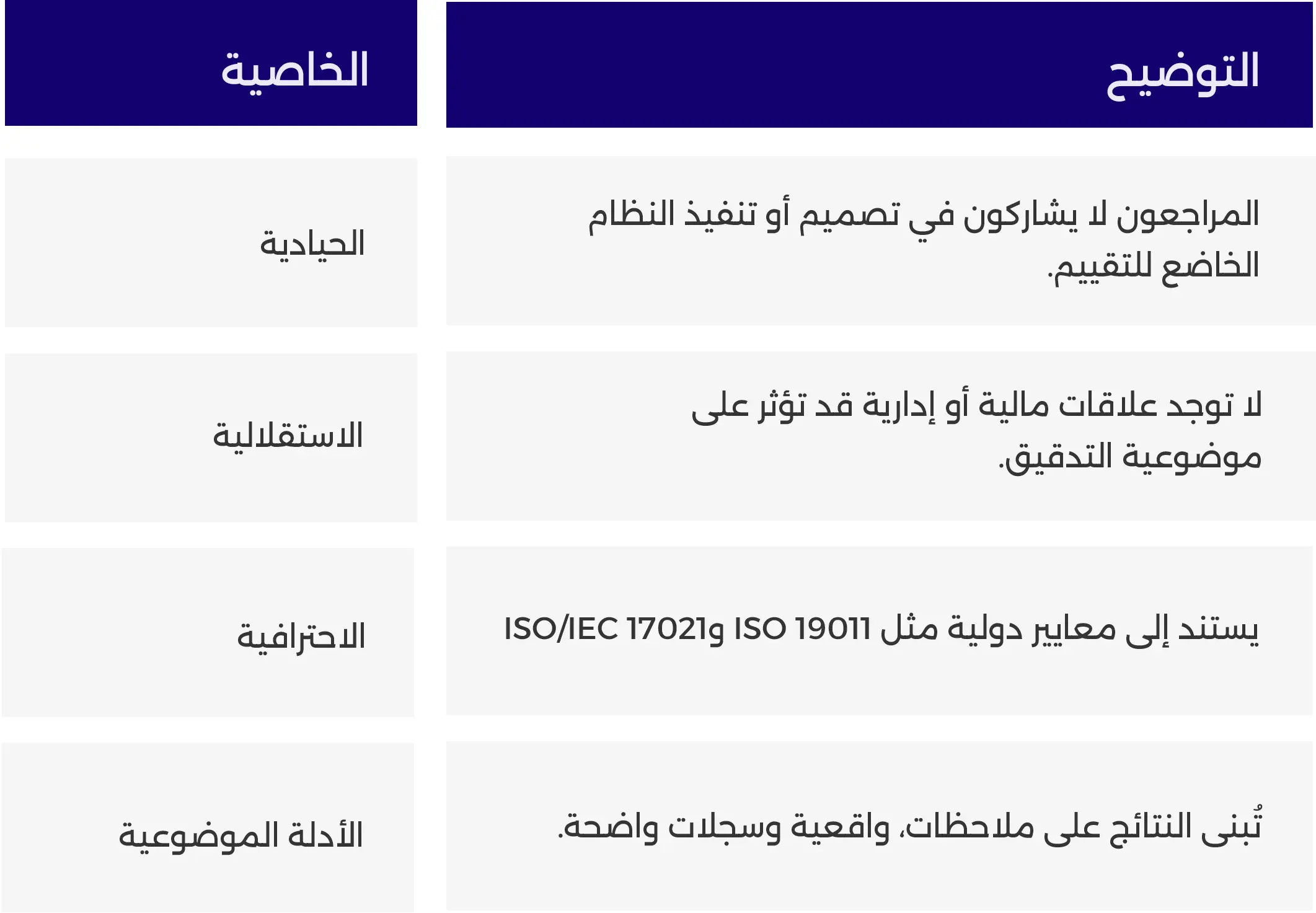 • تضمن الالتزام بمتطلبات ISO/IEC 17021 عدم الجمع بين التدقيق والاستشارة. • تساعد المؤسسات في تحسين أنظمتها دون خرق لمبدأ الحياد. • تعزز الفهم المؤسسي لمتطلبات المعيار دون فرض حلول.