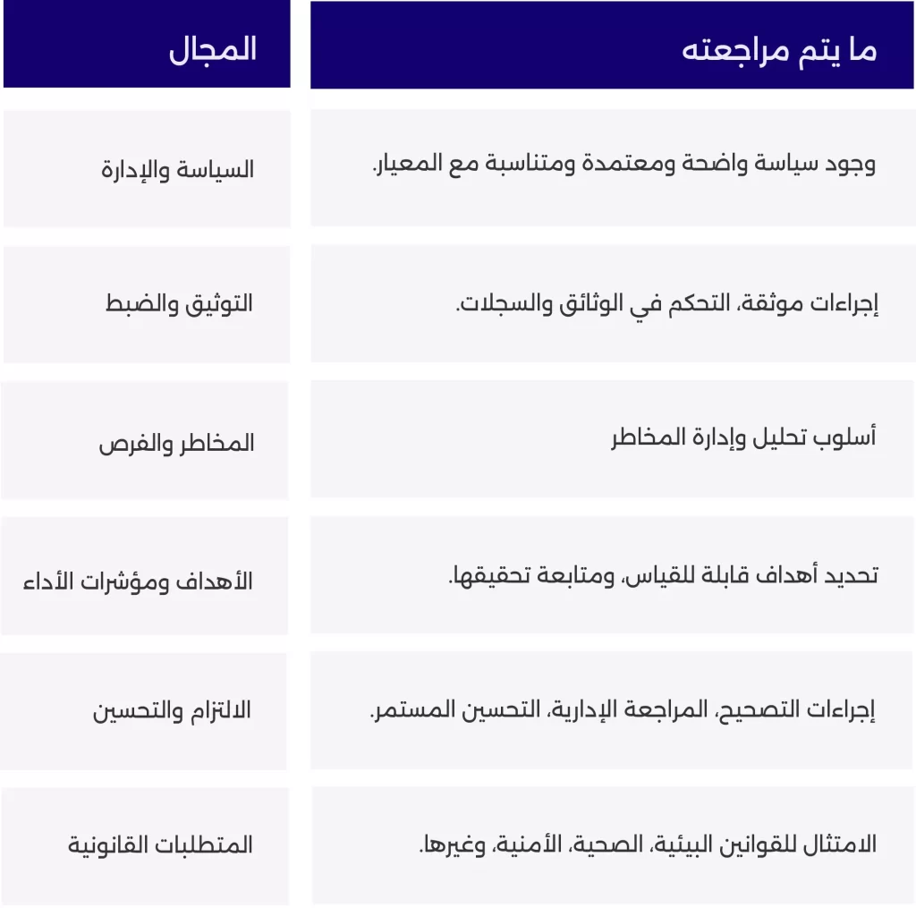 هي عملية تقييم كاملة ومتكاملة تهدف إلى فحص نظام إدارة المؤسسة من جميع الجوانب ذات العلاقة للتحقق من مدى توافقه مع معيار أو مجموعة من المعايير الدولية المعتمدة تُعد هذه المراجعة خطوة أساسية قبل: