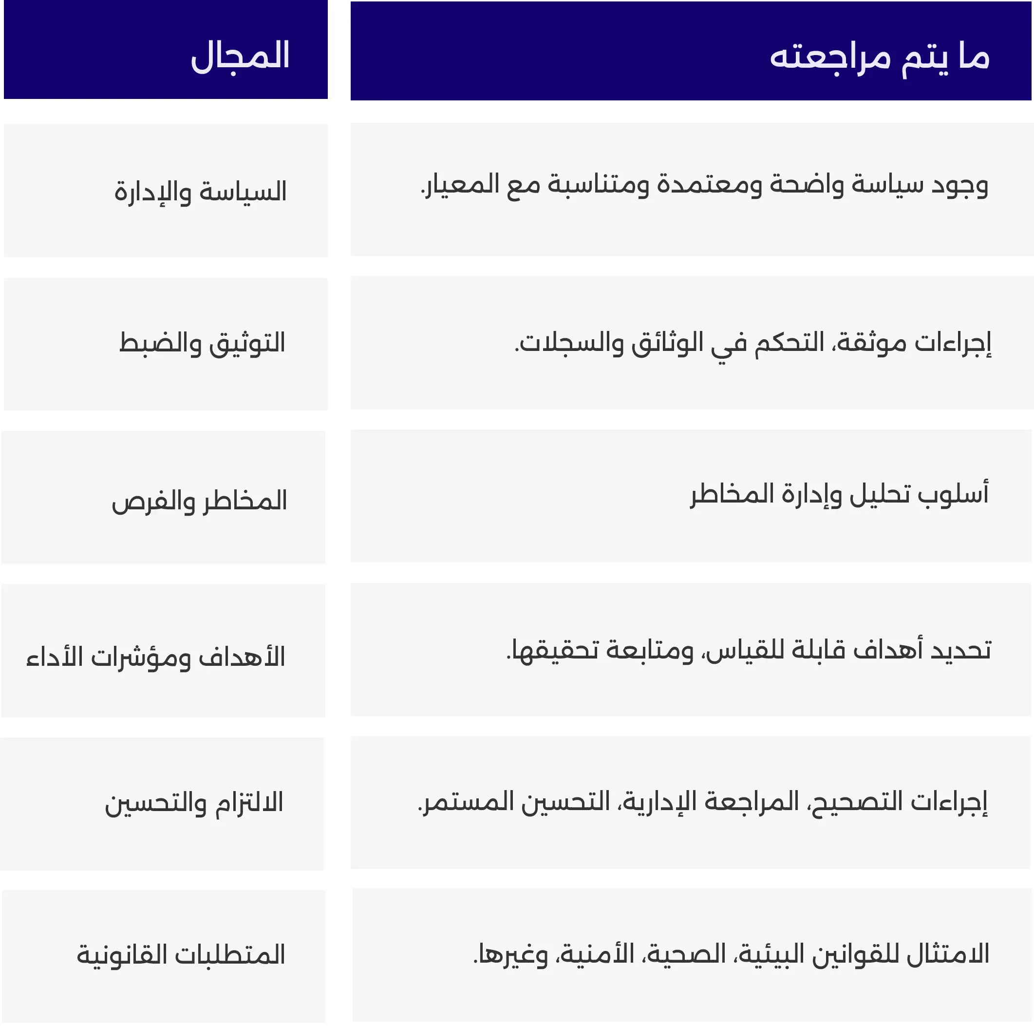━━ مراجعة شاملة للامتثال للمعايير المحددة